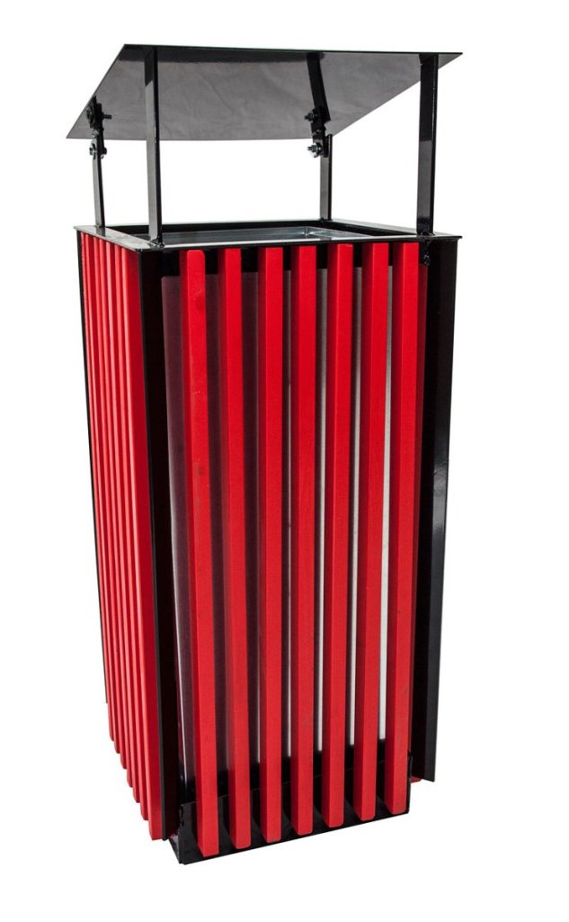 Abfallbehälter Art, mit Dach und mit Holzbelattung (3x Lasurbeschichtung), H x B x T 1000 x 400 x 400 mm