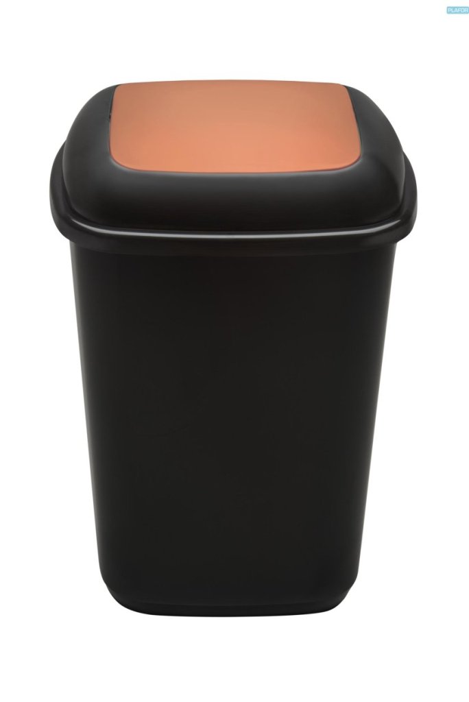 Abfallbehälter QUATRO 659-05, aus Kunststoff, schwarz (Polypropylen-Copolymer), Federklappe braun, Inhalt 45 l, Deckel abnehmbar.