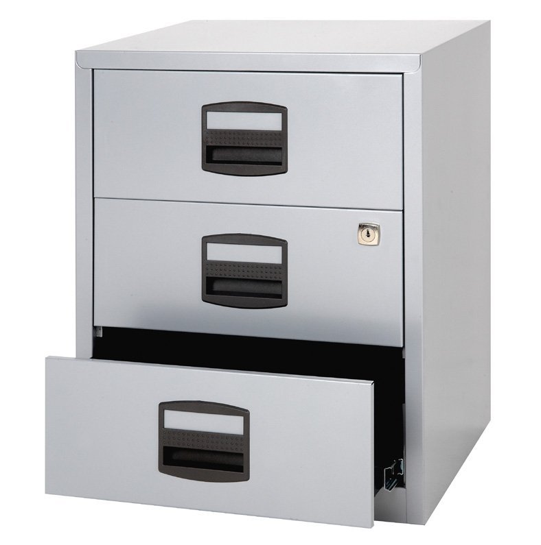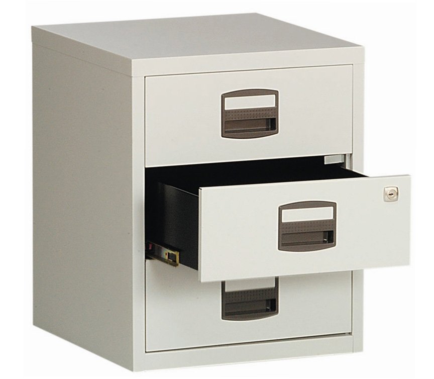 Aktenschrank BISLEY PFAM3S, mobil, H x B x T 529 x 413 x 400 mm, 3x Universal-Schublade, optimal für das Home Office. vollständige Beschreibung und Parameter