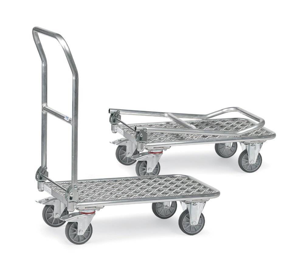 Alu-Klappwagen KW 2, Tragkraft 200 kg, Schiebebügel auf Plattform klappbar, Ladefläche L x B 720 x 450 mm, Ladehöhe 205 mm