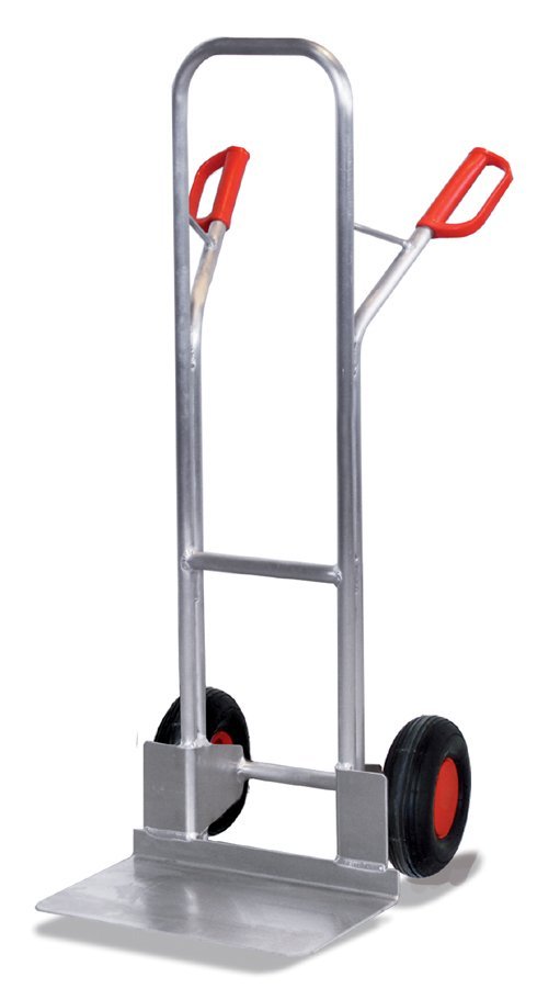 Alukarren A1326L, Tragkraft 200 kg, Höhe 1300 mm, breite Schaufel (300 x 480 mm), wahlweise mit Vollgummi- oder Luftbereifung