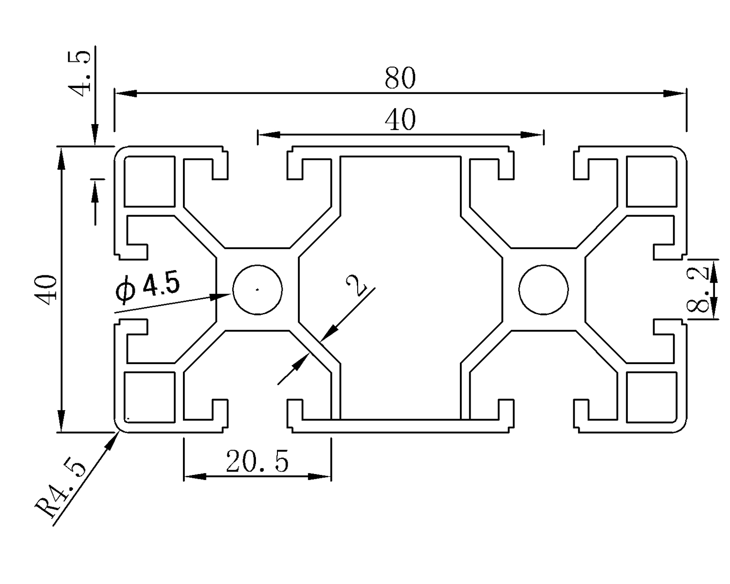 Aluminiumprofil mit den Maßen 40 x 80 mm. Der Preis ist pro 1 Meter angegeben. Maximale Länge eines Profils beträgt 4 Meter. vollständige Beschreibung und Parameter