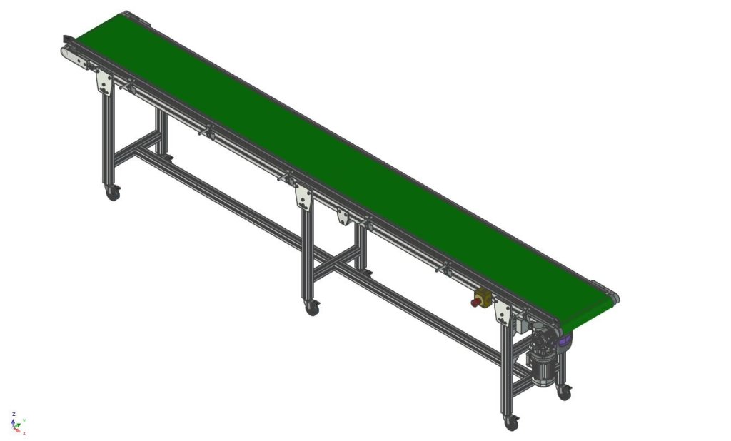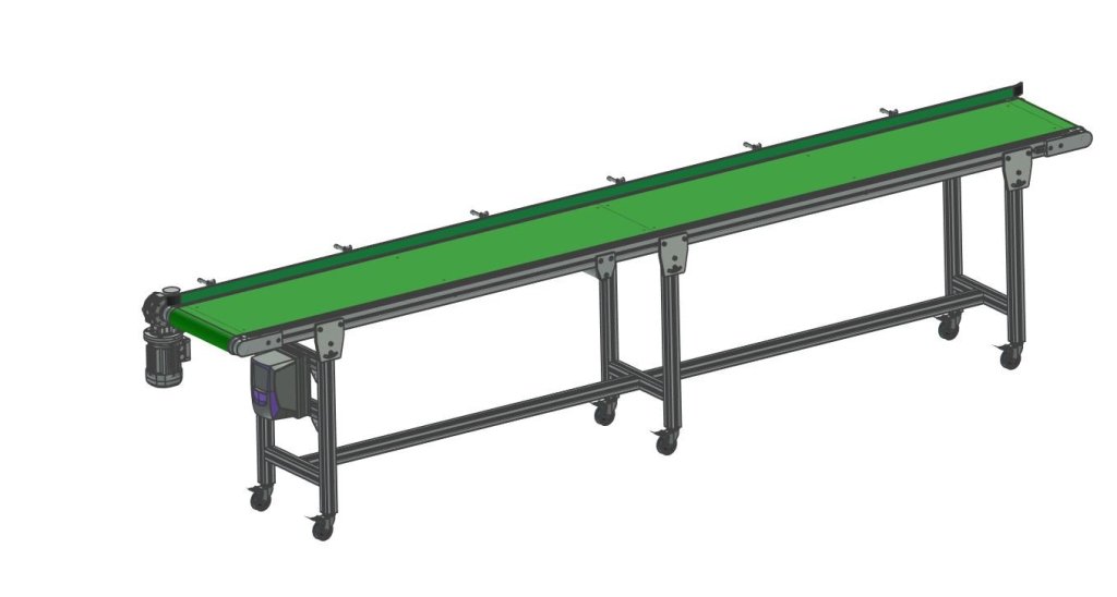 Ein Förderband zur Beförderung von Materialien und Produkten. Es wird verwendet, um nicht nur Schüttgut, sondern auch Stückgut in Verteilzentren, Flughäfen oder Supermärkten zu transportieren.