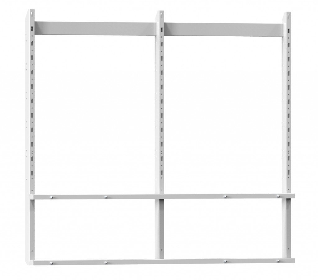 Aufbau KOMBI, Breite 2500 mm. Die Konstruktionen werden als Set geliefert und die Höhe der Pfosten kann nicht verändert werden. Die Höhe über der Arbeitsfläche ist 1142 mm.
