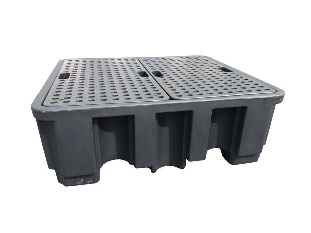 Auffangwanne für 4x 200-L-Fass 332-69072, Auffangvolumen 450 L, H x B x T 480 x 1290 x 1380 mm, mit herausnehmbarem Rost.