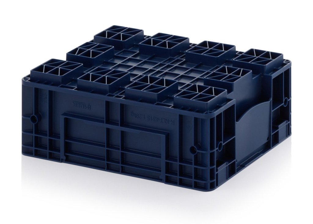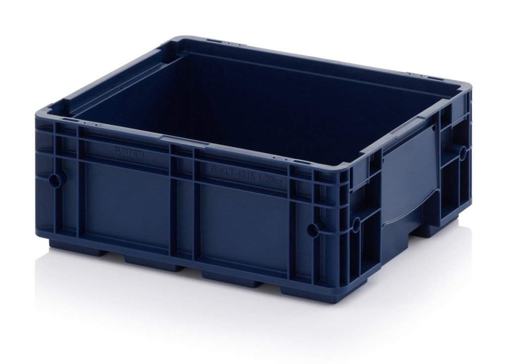 Behälter R-KLT 600 x 400 x 280 mm, Boden glatt, Traglast 20 kg, statische Traglast max. 600 kg, Farbe RAL 5003 blau.