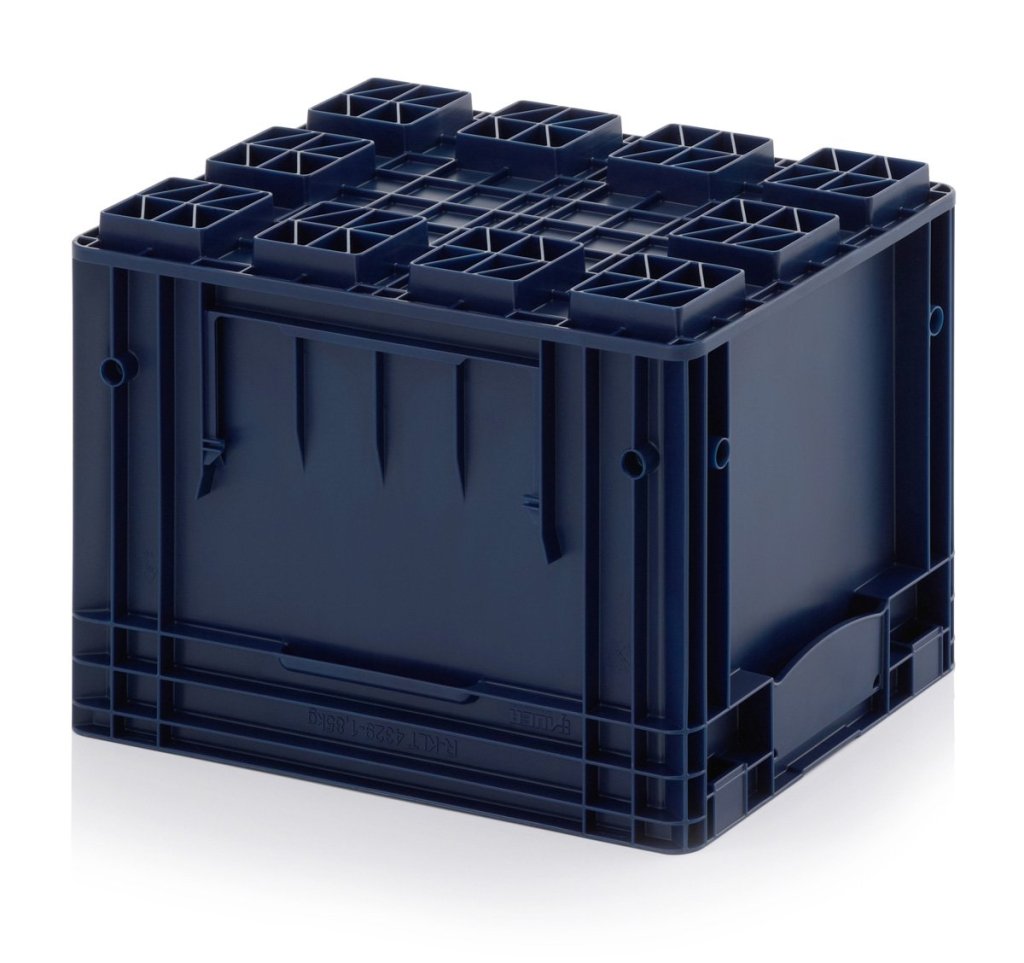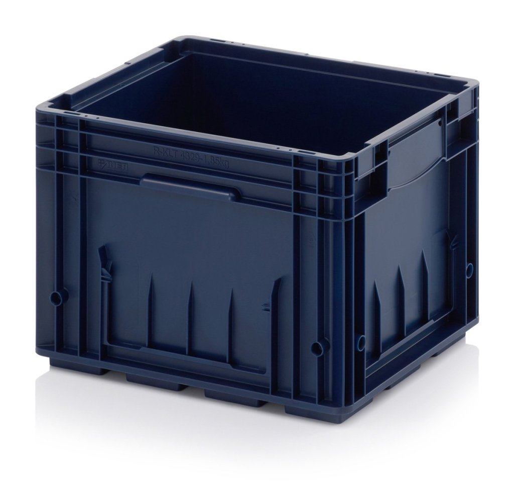 Behälter R-KLT 600 x 400 x 280 mm, Boden glatt, Traglast 20 kg, statische Traglast max. 600 kg, Farbe RAL 5003 blau.