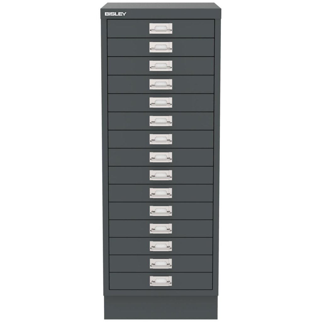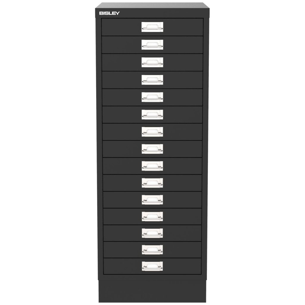 Bisley Schubladenschrank BA3/15 118, H x B x T 940 x 349 x 432 mm, DIN A3, mit Sockel in Schwarz, 15x Schublade