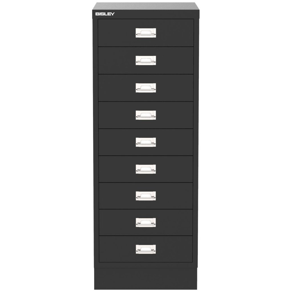 Bisley Schubladenschrank BA3/9 114, H x B x T 940 x 349 x 432 mm, DIN A3, mit Sockel in Schwarz, 9x Schublade