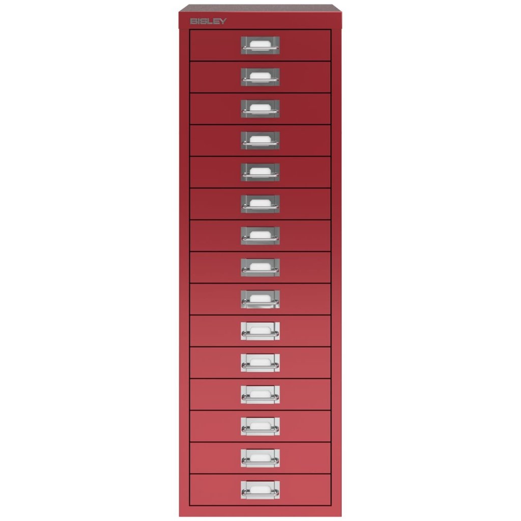 Bisley Schubladenschrank H3915NL, H x B x T 860 x 279 x 380 mm, DIN A4, ohne Sockel und Schloss, 15x Schublade