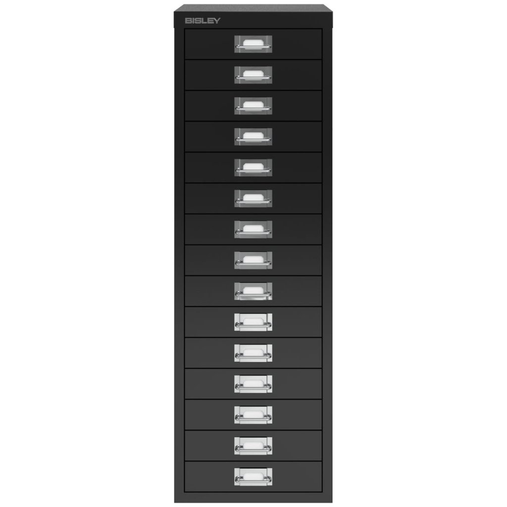 Bisley Schubladenschrank BA3/15 118, H x B x T 940 x 349 x 432 mm, DIN A3, mit Sockel in Schwarz, 15x Schublade