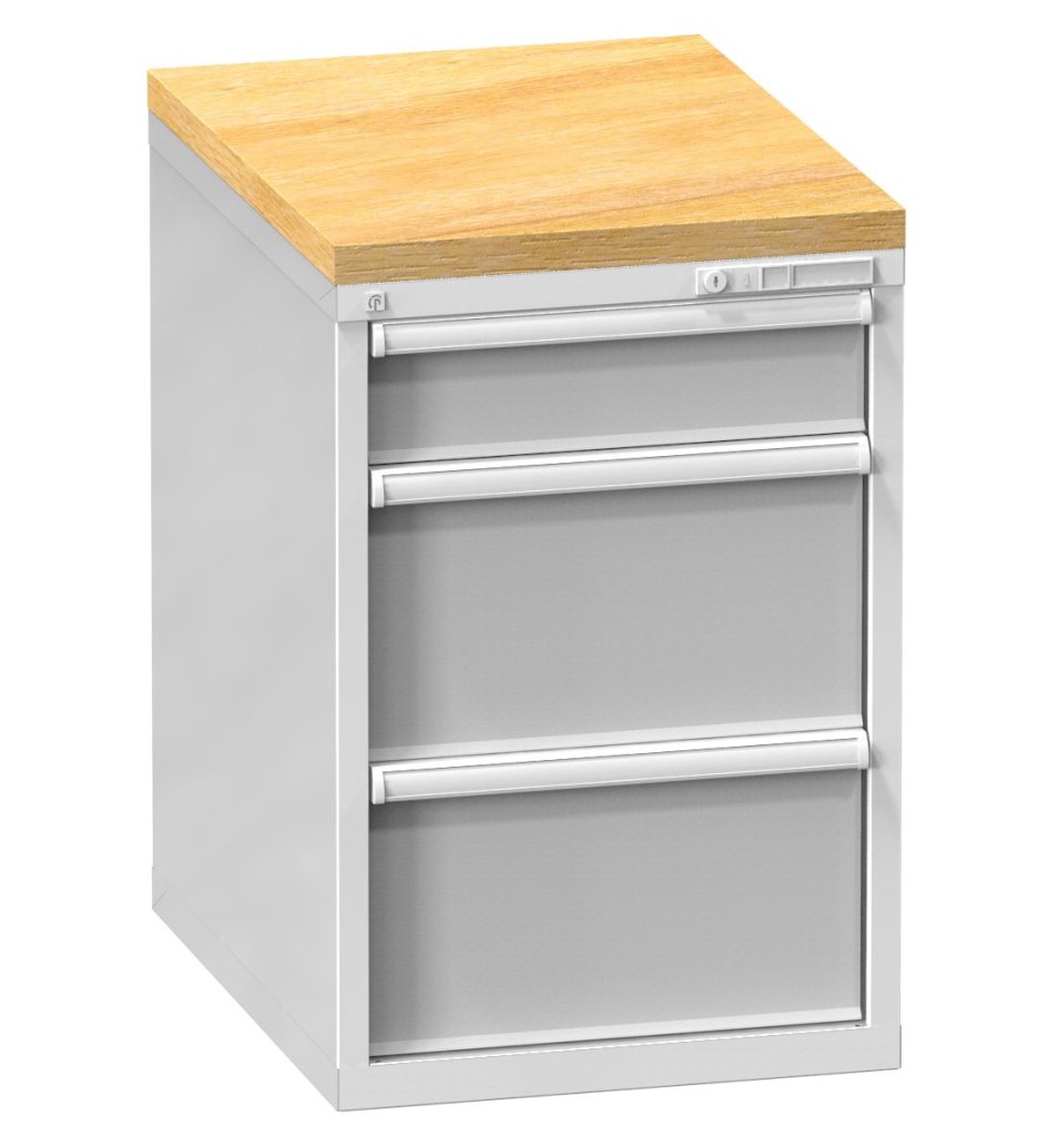Die 40 mm dicke Buchenplatte für Schubladenschränke POLAK, Typ ZD 27 x 36D, an Schrankdeckel angeschraubt, als Zubehör bestellbar. vollständige Beschreibung und Parameter