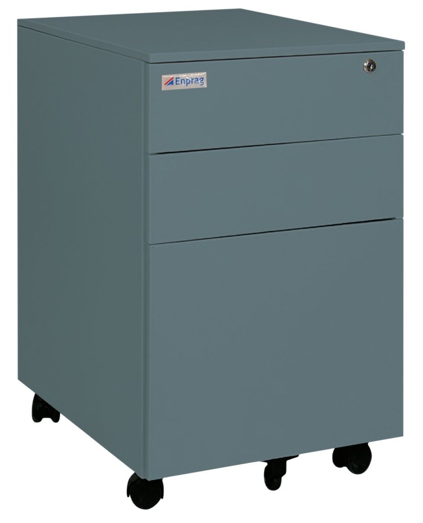 Rollcontainer HDT-03L, 3 Schubläden, aus Stahlblech 0,6 mm. H x B x T 643 x 405 x 500 mm, Zentralverriegelung, pulverbeschichtet, Farbe RAL 7047 Telegrau.