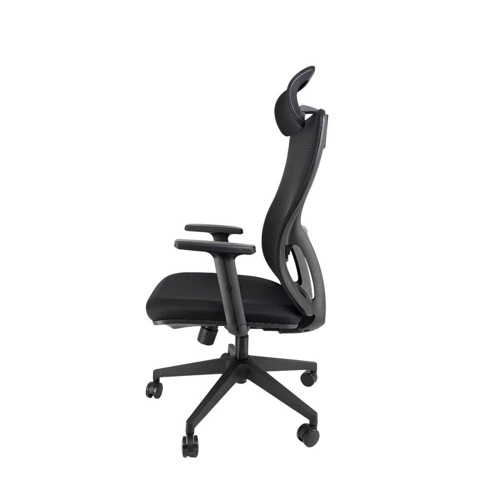 Der ergonomische Bürostuhl bietet hohen Sitzkomfort und vielfältige Möglichkeiten zur individuellen Einstellung. Dank der höhenverstellbaren Lendenstütze, der verstellbaren Armlehnen und der Kopfstütze passt er sich mühelos jedem Nutzer an. Die Synchro‑Mechanik unterstützt dynamisches Sitzen, während die feste Netzrückenlehne den ganzen Tag über optimale Atmungsaktivität gewährleistet. Die robuste Konstruktion mit einer Tragfähigkeit von 150 kg und einem schwarzen Kunststofffußkreuz garantiert lange Lebensdauer und Stabilität. Die breite und bequeme Sitzfläche bietet ausreichend Platz auch bei längerem Sitzen.