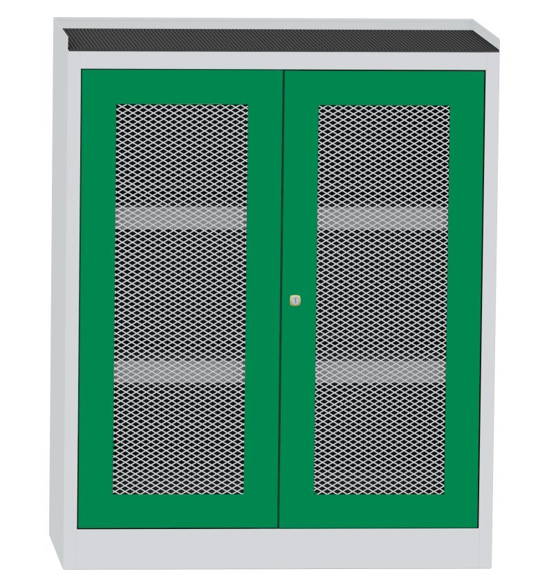 Chemikalienschrank, H x B x T 1180 x 950 x 500 mm. Korpusfarben RAL 7035 Lichtgrau.