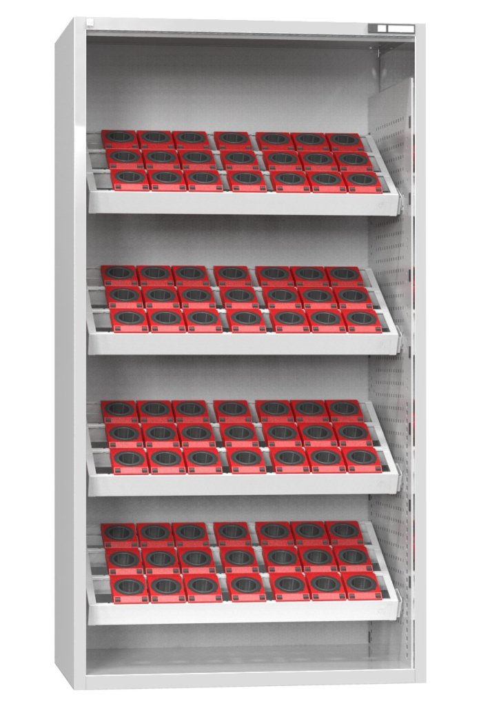 Ein einziges, originelles System regelt die Aufbewahrung von Zerspanungs- sowie Stanzwerkzeugen. Die Aufbewahrung der Zerspanungswerkzeuge und der Stanzwerkzeuge unterscheidet sich lediglich durch die Art der Werkzeughalterungen, die Aufbewahrungs- und Transportmittel sind identisch.