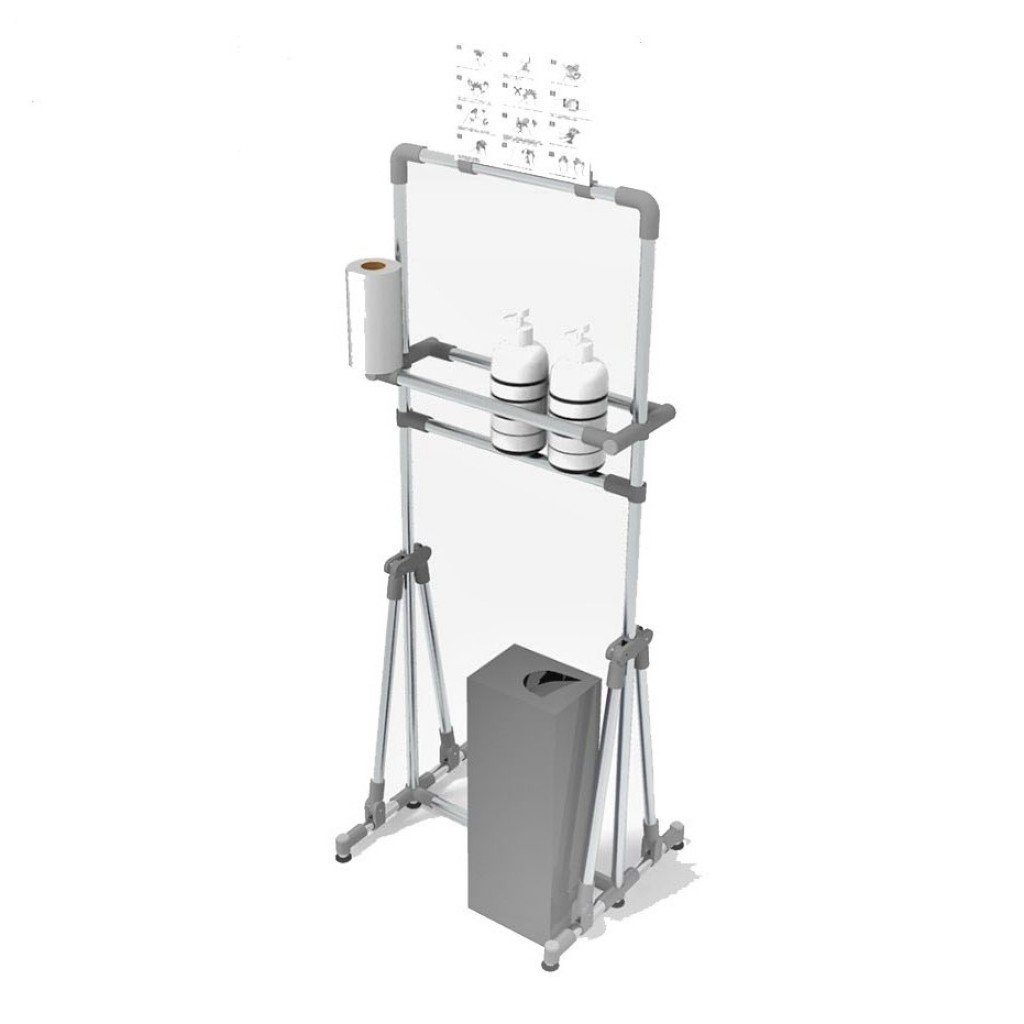 Desinfektionsmittelständer, nach Wunsch und Maß aus Rohr-System Logiform, für Desinfektionsmittelspender, mit Papierhandtuchhalter vollständige Beschreibung und Parameter