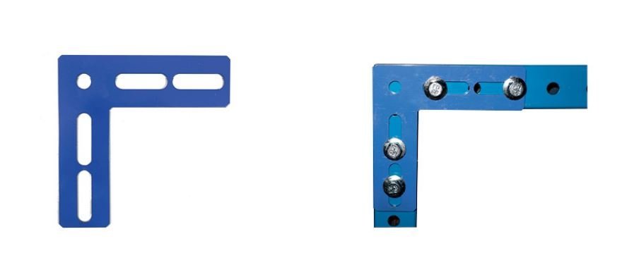 Eckverbinder zur Befestigung von Konstruktionsverbindungen. Farbe blau oder verzinkt.