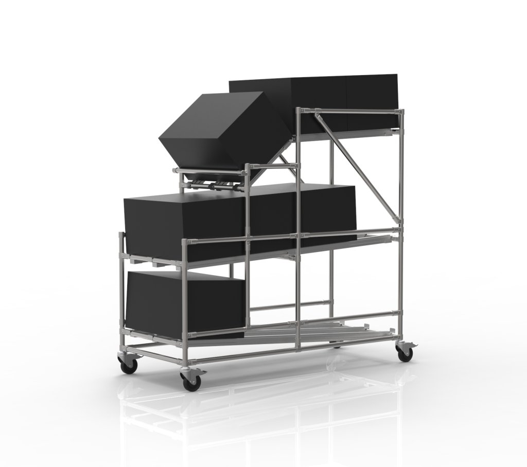 Gefälleregal aus einem Rohrbausatzsystem vollständige Beschreibung und Parameter