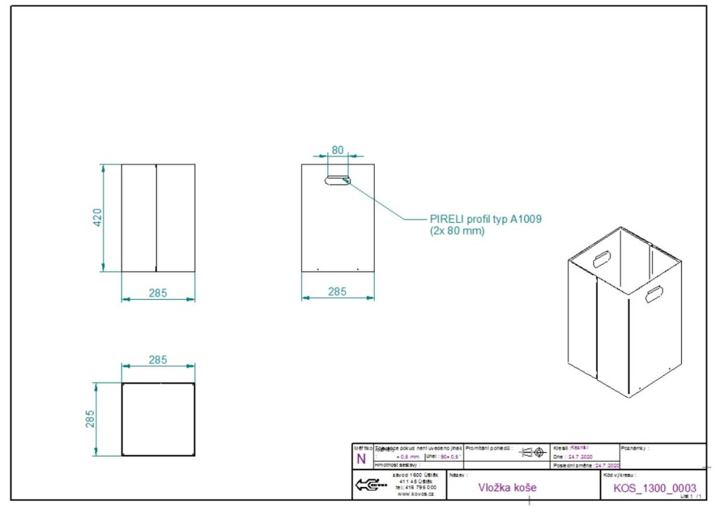 Einlage für Abfallbehälter KOS 1302, 1296, 1299. vollständige Beschreibung und Parameter