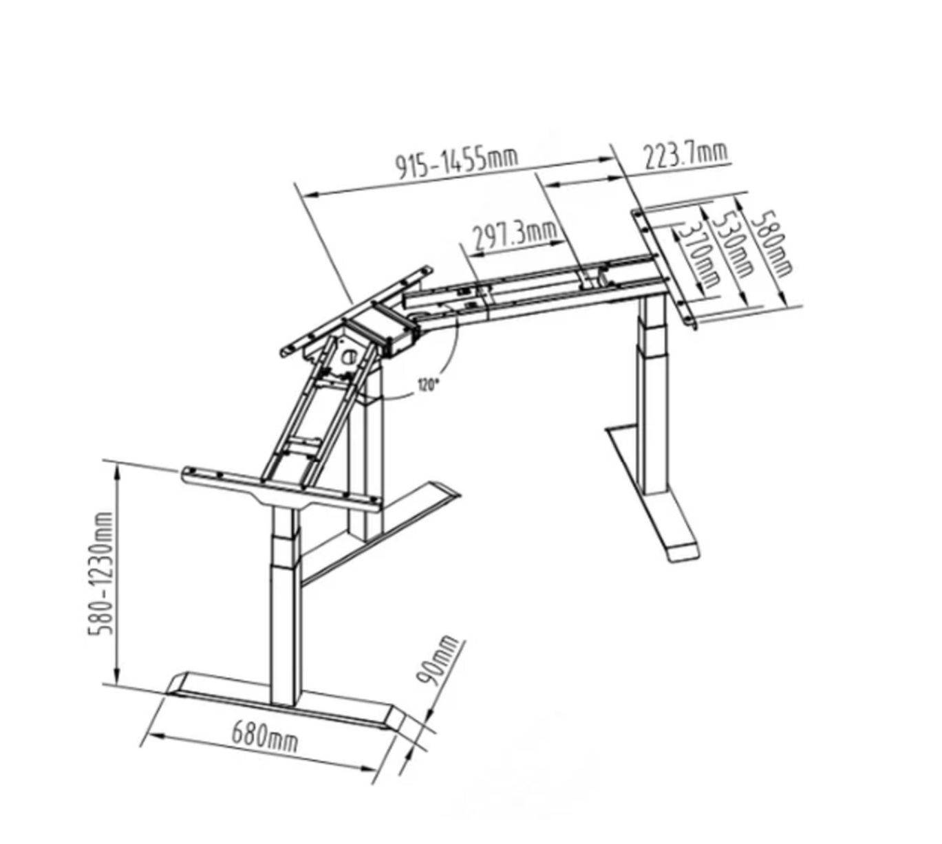 Elektrisch höhenverstellbares Tischgestell mit flüsterleisem und sanftem Betrieb. Dank drei leistungsstarker Motoren genießen Sie leise Höhenverstellung mit einem Geräuschpegel unter 50 dB – ideal für gemeinsam genutzte Arbeitsplätze. Mit einer Hubgeschwindigkeit von 38 mm/s ist der Wechsel zwischen Sitzen und Stehen schnell und einfach. Die empfohlene L - förmige Tischplatte im 90° Winkel beträgt 1300 – 1900 × 600 – 800 mm.