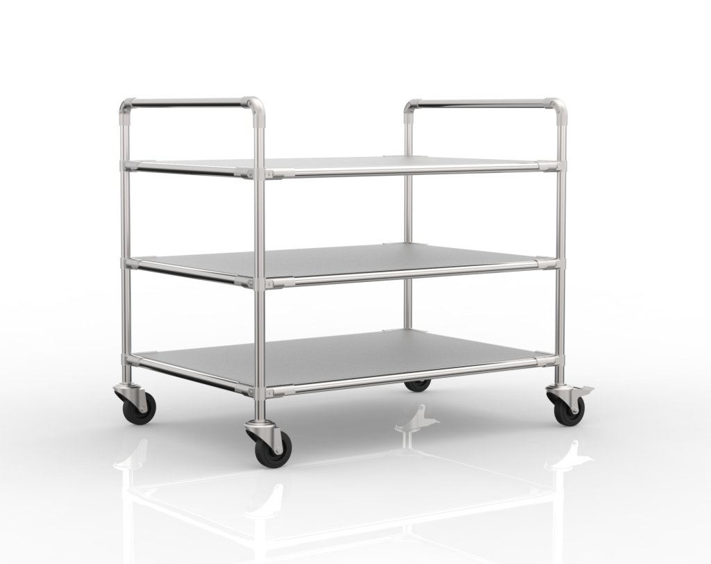 Ein antistatischer Regalwagen aus einem Rohrbaukastensystem ist die ideale Wahl für die Handhabung von Waren, die empfindlich auf elektrostatische Entladung reagieren. Der Wagen ist mit einer ESD-Laminatplatte mit einer Dicke von 18 mm ausgestattet. Abmessungen: 964 x 1068 x 768 mm, Raddurchmesser: 100 mm.