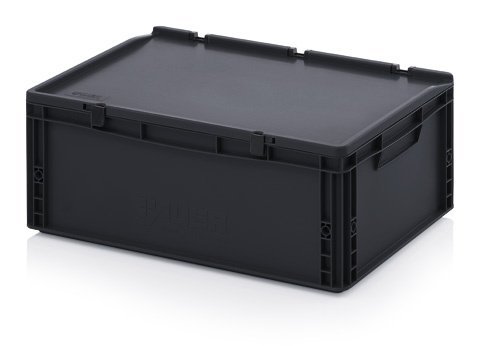 ESD Eurobehälter mit Deckel 965738, vollkommen sicher für empfindliche Produkte, stapelbar, Volumen 45 l.