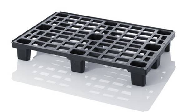 ESD-Kunststoffpalette, stapelbar, H x B x T 150 x 800 x 1200 mm, aus elektrisch leitfähigem Kunststoff wurden speziell für die sichere Lagerung und den Transport von empfindlichen Elektronik-Komponenten entwickelt.