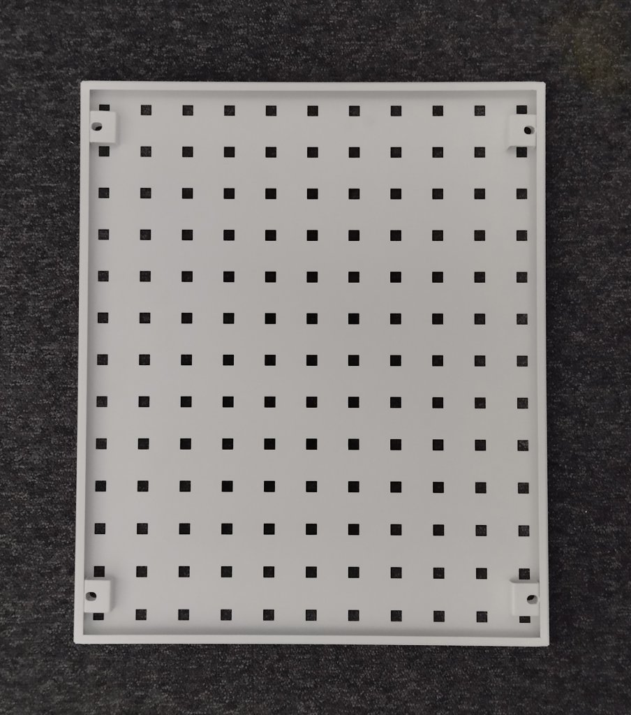 ESD-Lochplatte mit abgerundeten Kanten. Löcher zur Befestigung an einem Rohrsystem oder an der Wand. Ideal zum Aufhängen von vollständige Beschreibung und Parameter