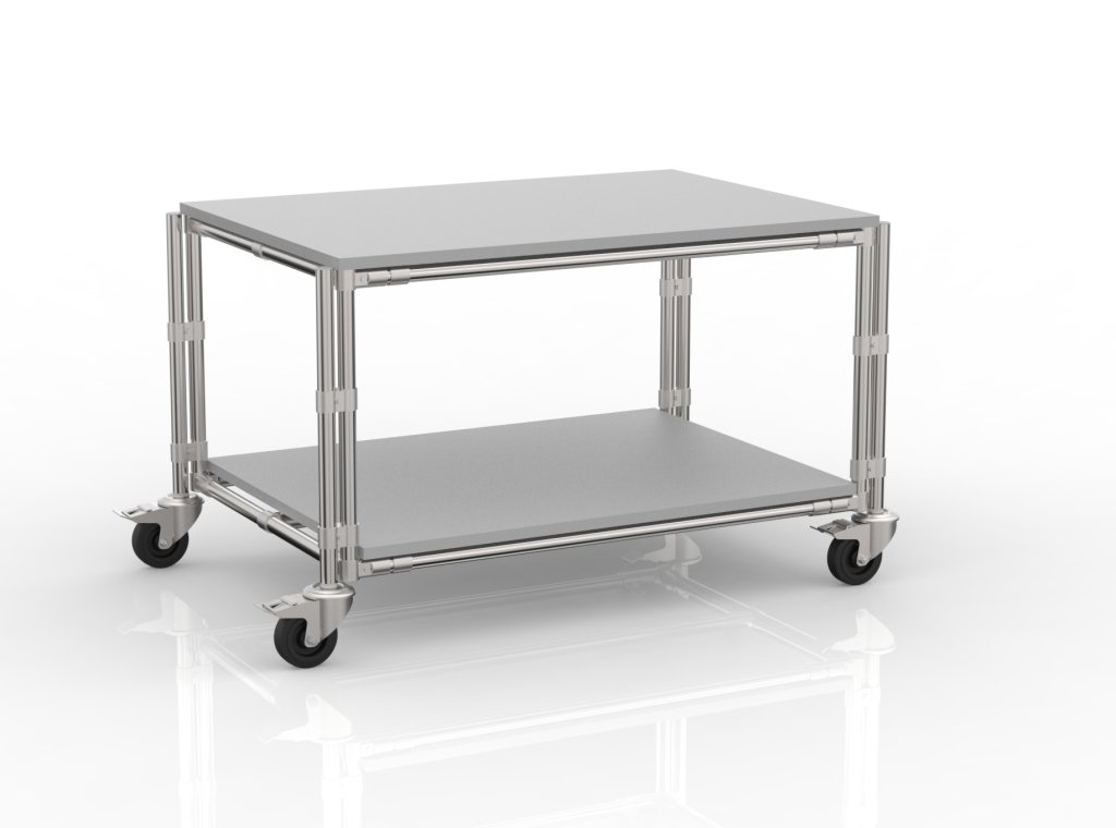 Höhenverstellbarer antistatischer Wagen aus einem Rohrsystem-Bausatz ist die ideale Wahl für die Manipulation von Waren, die empfindlich auf elektronische Ladung reagieren. Der Wagen ist mit einer ESD-Laminatplatte von 19 mm Dicke ausgestattet. Die Höhe der Arbeitsfläche ist zwischen 650 und 890 mm verstellbar. Die Maße sind 650 x 1000 x 700 mm, mit einem Raddurchmesser von 100 mm.