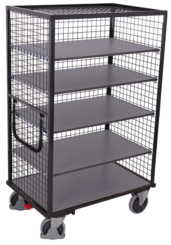 Kastenwagen 5392, Tragkraft 750 kg,mit Doppelflügeltür und Treibrieglverschluss, mit Drahtgitter verkleidet, TOTALSTOP, Ladefläche L x B 1000 x 680 mm, Ladehöhe 292, 582, 882, 1182, 1482 mm, Höhe 1792 mm