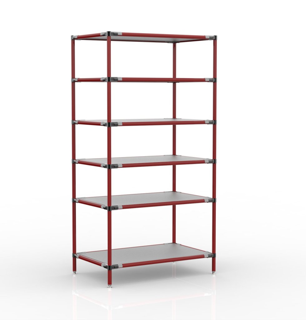 Ein Regal aus einem Rohrsystem mit sechs geraden Regalböden ist ein praktischer Helfer. Es gewährleistet eine übersichtliche vollständige Beschreibung und Parameter