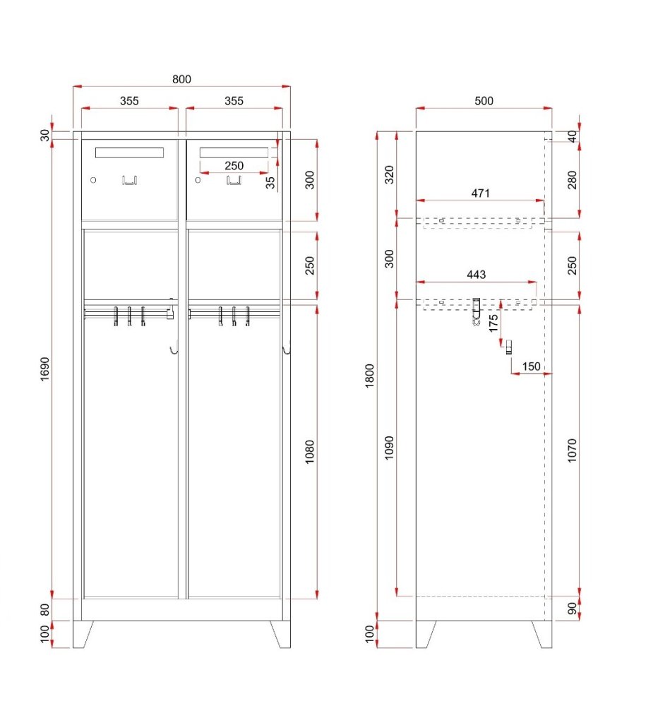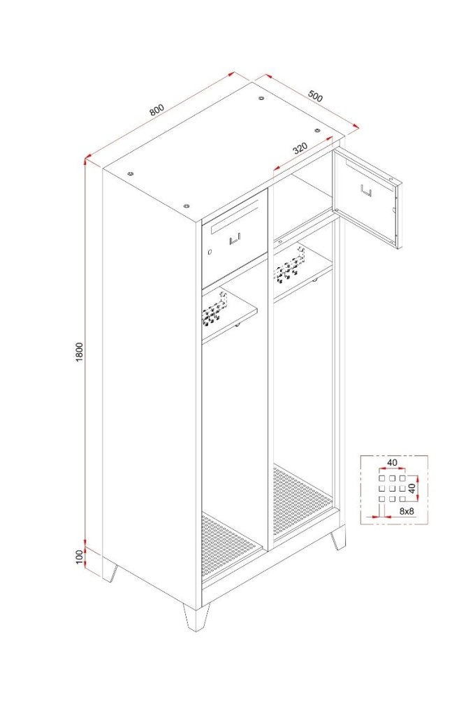 Feuerwehrschrank mit Füßen, B x H x T 800 x 1900 x 500 mm. vollständige Beschreibung und Parameter