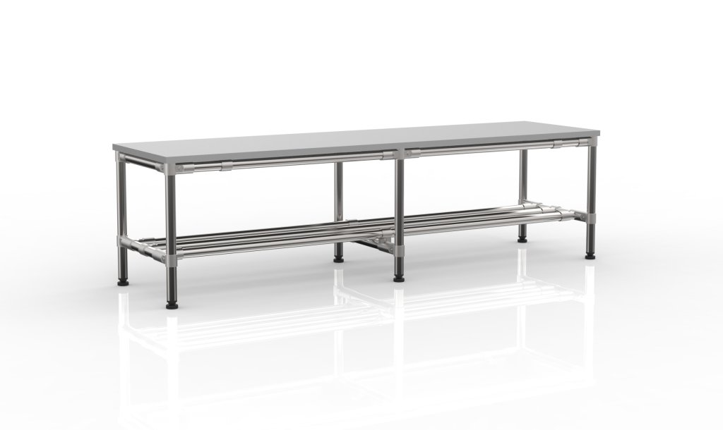 Garderobenbank 21101904, aus dem Baukasten-Rohrsystem, Breite 1500 mm. vollständige Beschreibung und Parameter