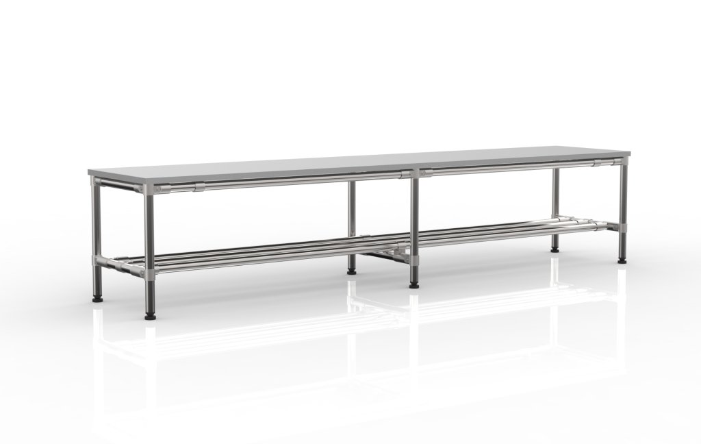 Garderobenbank 21101905, aus dem Baukasten-Rohrsystem, Breite 2000 mm. vollständige Beschreibung und Parameter