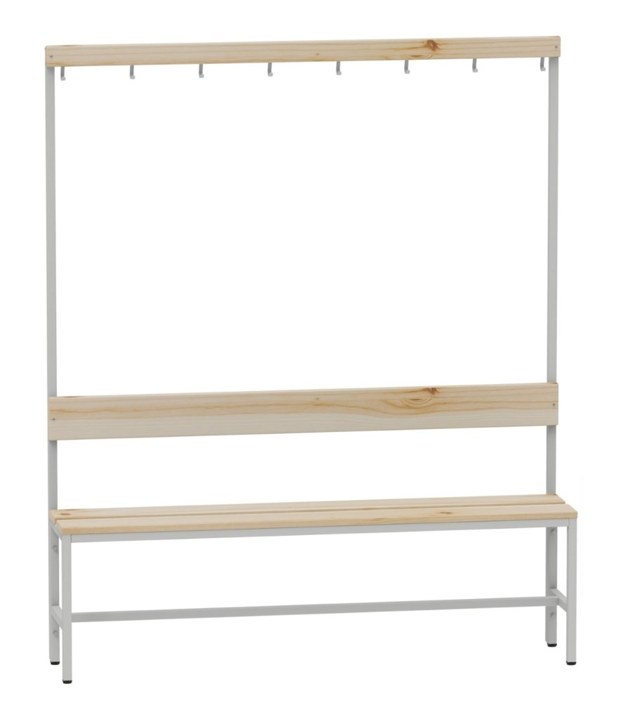 Garderobenbank, einseitig, mit Kleiderhaken, Breite 1500 mm.