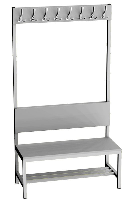 Garderobenbank mit Rückenlehne und Kleiderhaken, Breite 1000 mm. vollständige Beschreibung und Parameter