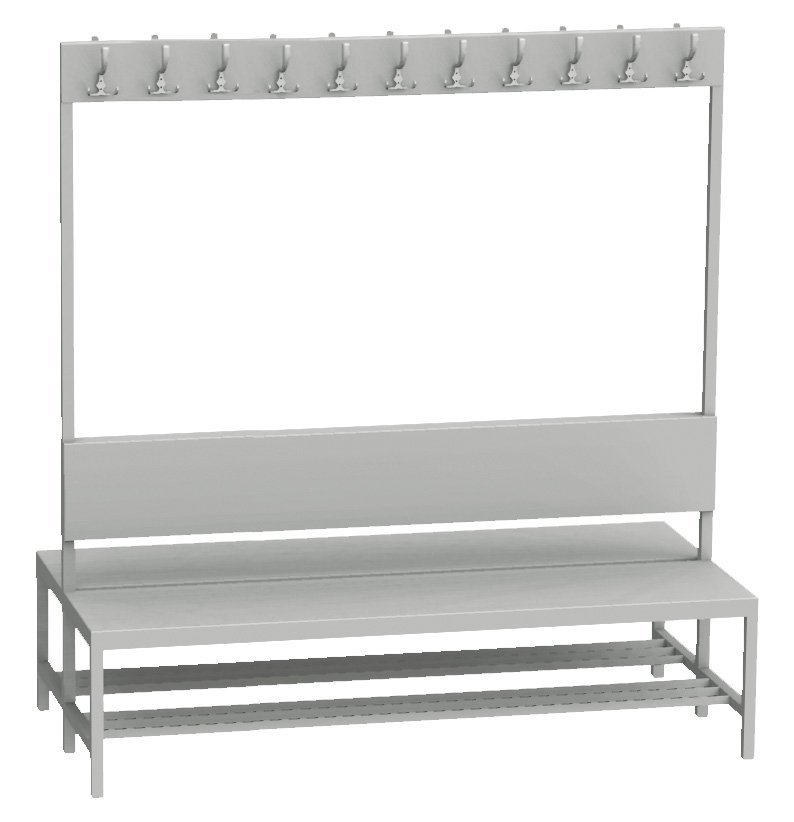 Garderobenbank mit der Rückenlehne und Kleiderhaken, beidseitig, H x B x T 1800 x 1500 x 830 mm