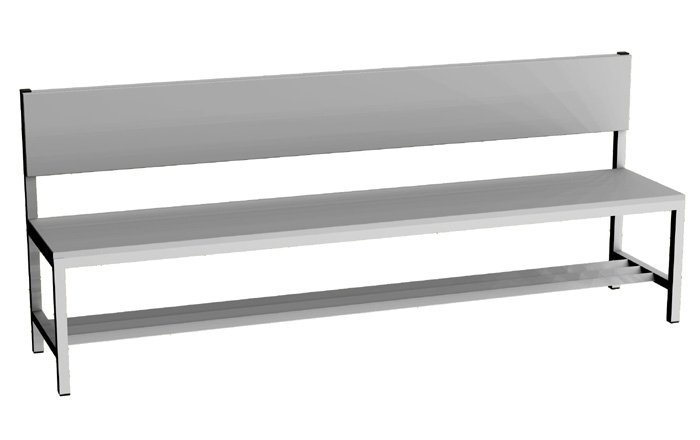Garderobenbank mit Rückenlehne, Breite 2000 mm.