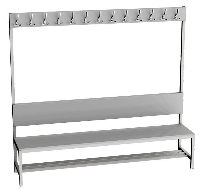 Garderobenbank mit der Rückenlehne und Kleiderhaken, beidseitig, H x B x T 1800 x 1500 x 830 mm