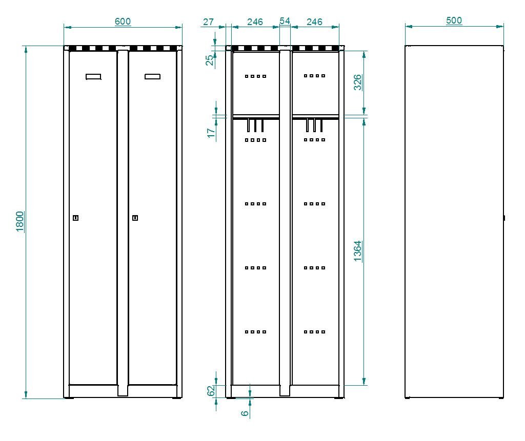 Garderobenschrank, H x B x T 1800 x 600 x 500 mm vollständige Beschreibung und Parameter