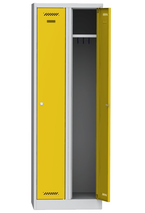 Garderobenschrank mit Sockel, 2 Türen, B x H x T 600 x 1850 x 500 mm, Korpusfarbe RAL 7035 Lichtgrau.