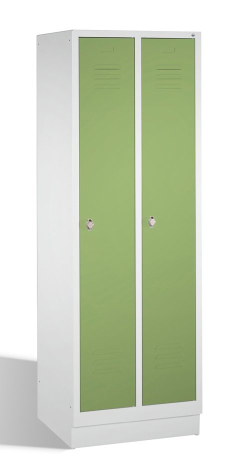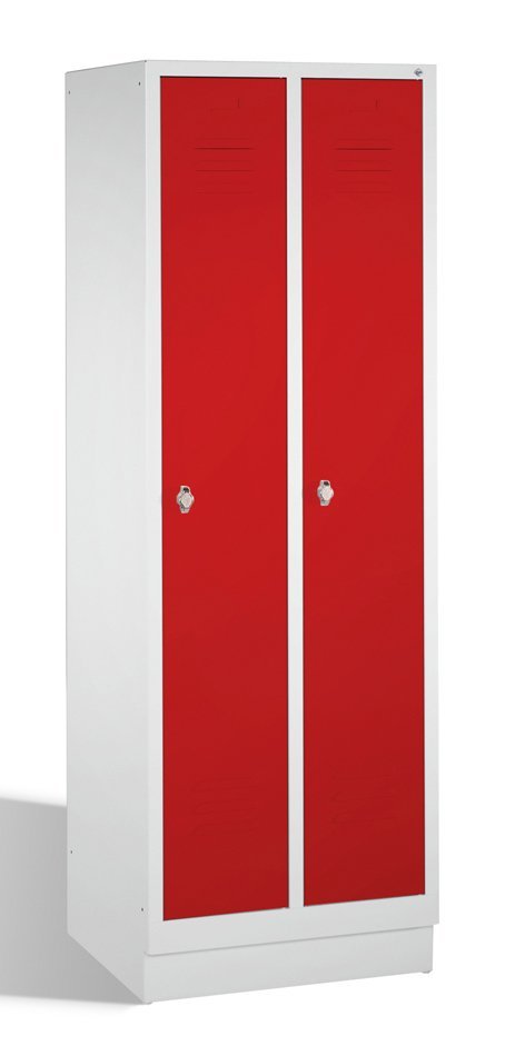 Garderobenschrank mit Sockel, 2 Türen, B x H x T 500 x 1850 x 500 mm. Korpusfarbe RAL 7035 Lichtgrau.