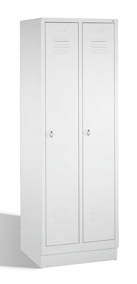 Garderobenschrank mit Sockel, 2 Türen, B x H x T 600 x 1850 x 500 mm, Korpusfarbe RAL 7035 Lichtgrau.