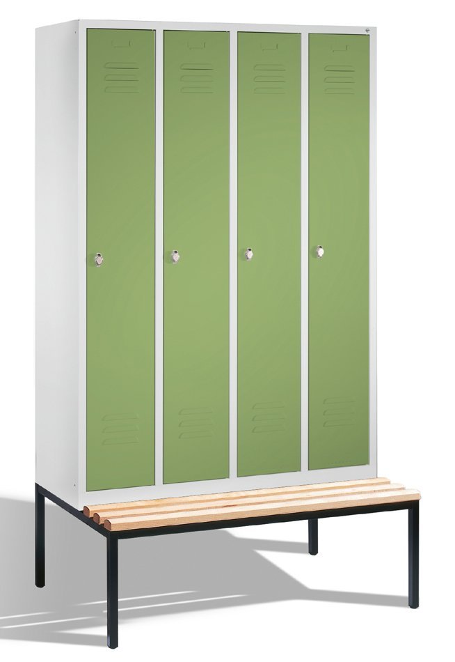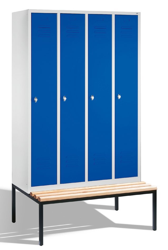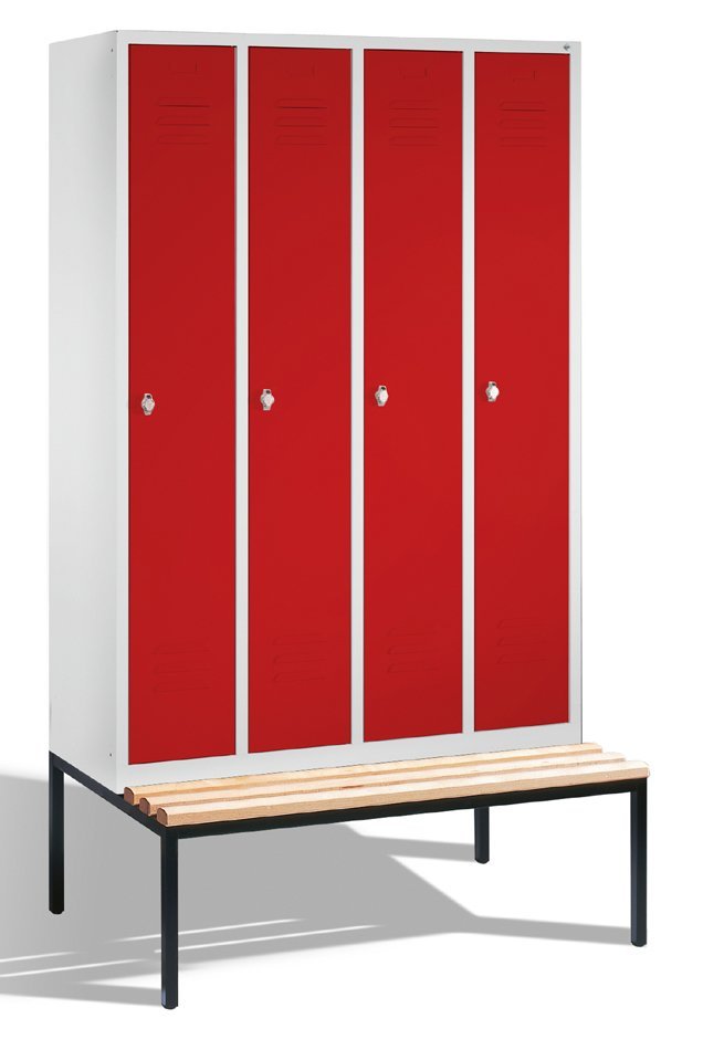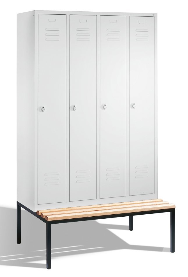Garderobenschrank CP 8350-40, H x B x T 2090 x 1190 x 500/815 mm, doppelstöckig, mit untergebauter Sitzbank