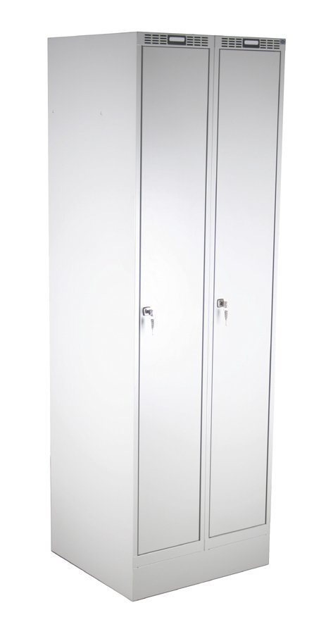 Garderobenschrank mit Sockel, 2 Türen, B x H x T 600 x 1850 x 500 mm, Korpusfarbe RAL 7035 Lichtgrau.