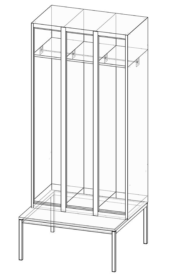 | Der Sockel kann nachträglich bestellt werden, dieser wird am Garderobenschrank ohne Verbindungsmaterial befestigt. Höhe 100 mm. |