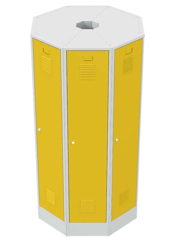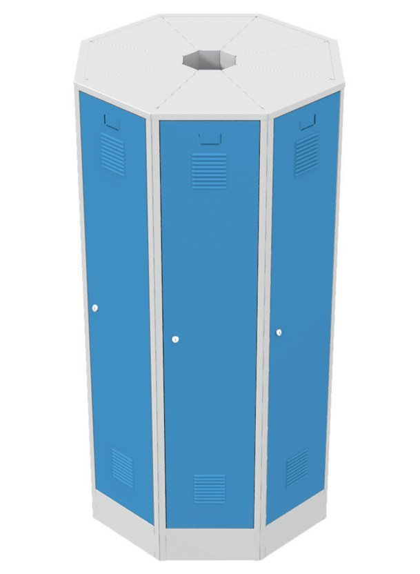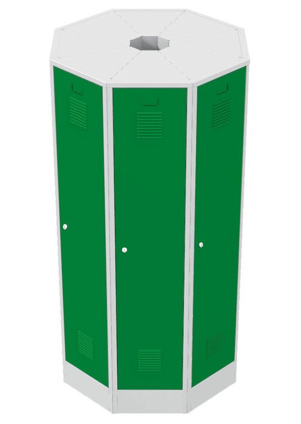 Garderobenschrank, Dreieckform, H x B x T 1850 x 380 x 370 mm. Korpusfarben RAL 7035 Lichtgrau.