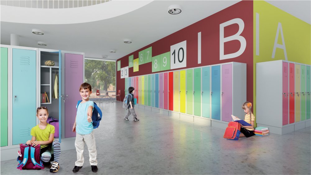 Garderobenschrank, H x B x T 1450 x 900 x 500 mm, 3x Türen, mit Namensschild. 16 Farben zur Auswahl ohne Aufpreis. vollständige Beschreibung und Parameter
