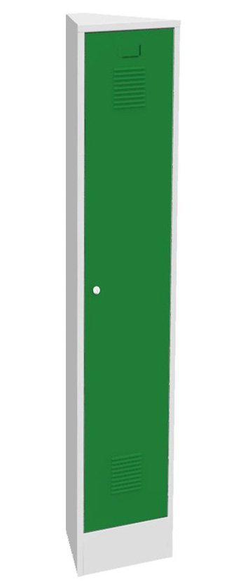 Garderobenschrank, Dreieckform, H x B x T 1850 x 380 x 370 mm. Korpusfarben RAL 7035 Lichtgrau. vollständige Beschreibung und Parameter